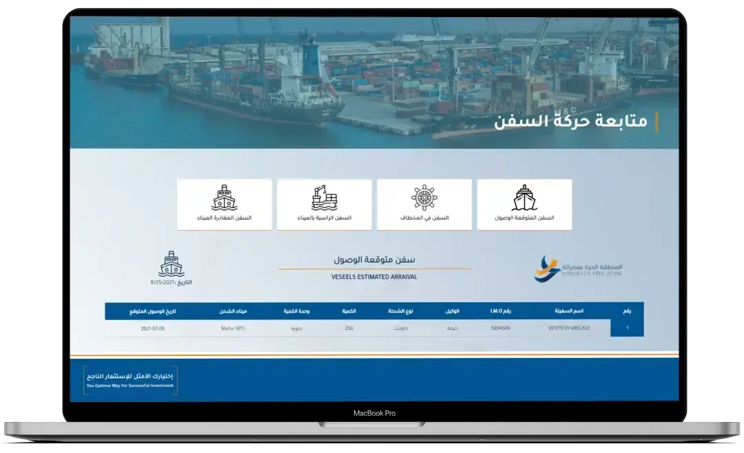 - The Misrata Free Zone system is an integrated platform designed to centralize and optimize port activities. By providing real-time tracking, detailed analytics, and user-friendly interfaces, it enhances efficiency, safety, and strategic decision-making for port operators and grain silo managers.